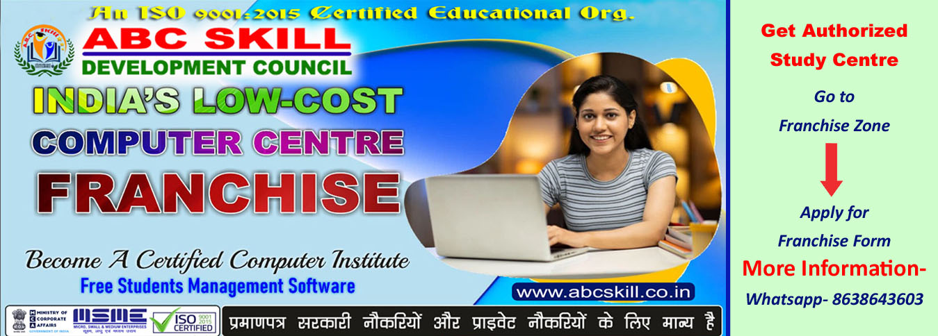 ABC SKILL DEVELOPMENT COUNCIL (Aanundoram Barooah Computer and Skill Development Council) has initiated information technology education and various skills development Training wakefulness Programme outside formal education sector in India, which is Genuine Computer and Skill Development Education Centre provider organization, offering Low center franchise fee & job oriented training at national level. ABC Skill Development Council is registered under Ministry of Corporate Affairs, Govt. of India vide CIN No- U85300AS2022NPL022950, under Companies Act 2013, Pan No- AAWCA9784G and also registered under MSME, Govt. of India. Moreover, ABC Skill Development Council is an ISO 9001:2015 Certified organization who execute computer education and training, social and health welfare, research and development, rural development etc.